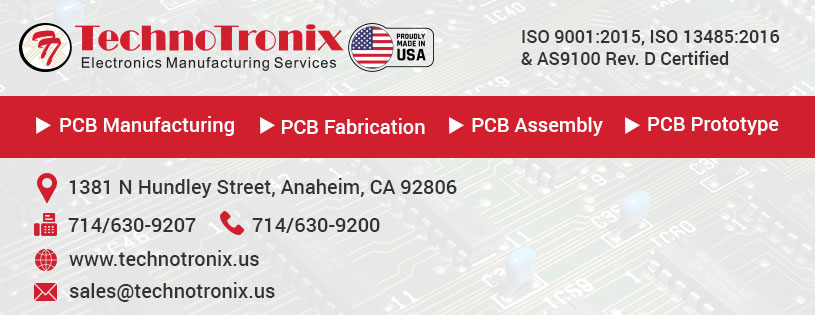 Technotronix is a California-based ISO 9001:2015, ISO 13485:2016, and AS9100 Rev. D Certified electronics manufacturing company delivering turnkey, high-mix, and cost-effective PCB-related services to various industries, including Aerospace, Defense and Military, Telecommunication, Medical, Renewable Energy, and more. For over six decades, they have continuously invested and innovated in design, prototyping, human resources, quality, digital and infrastructure, NPI, assembly, and testing and inspection equipment. As a customer-focused organization, no matter what complex designs come to them, they always create the finest quality printed circuit boards to meet all requirements. They aim to deliver custom and high-quality electronics manufacturing services in the USA to meet specific industrial requirements. The following list covers their services: • PCB Manufacturing • PCB Assembly • PCB Fabrication • PCB Layout • PCB Prototype • PCB Rework