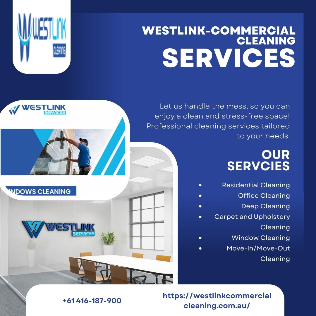 Westlink Commercial Cleaning is a professional and reliable commercial cleaning company dedicated to delivering high-quality cleaning solutions for businesses across a wide range of industries. They specialise in maintaining clean, hygienic, and well-presented workplaces, offering tailored services for offices, retail spaces, medical centres, gyms, industrial facilities, and other commercial properties. With a strong focus on attention to detail, trained and experienced staff, and the use of eco-friendly cleaning products, Westlink Commercial Cleaning ensures every space meets high standards of cleanliness and safety. Their services include regular commercial cleaning, deep cleaning, window cleaning, pressure washing, post-construction cleaning, and specialised hygiene solutions, all designed to support a healthy, professional environment that leaves a positive impression on employees, clients, and visitors.